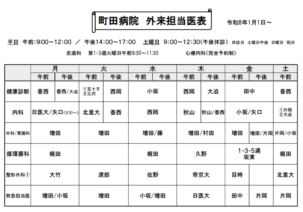 外来担当医表